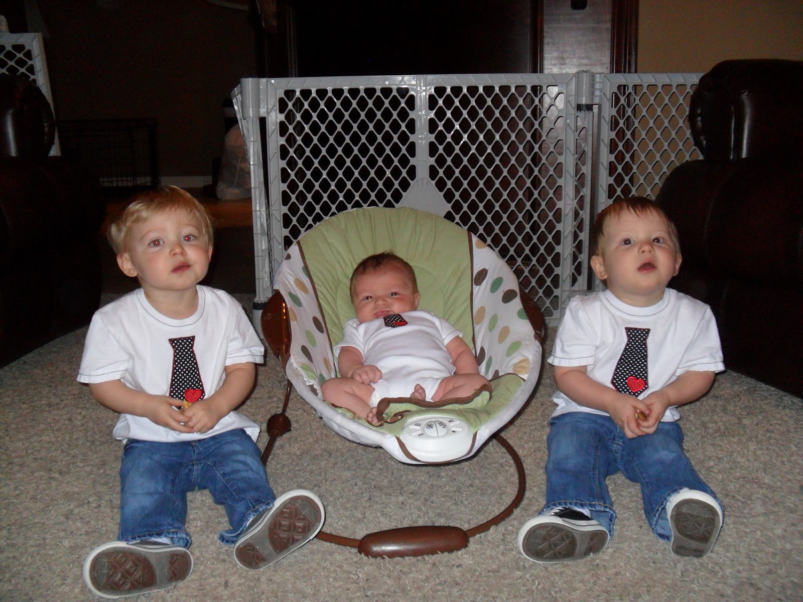 Since the day we welcomed Bray in to this world life has not been the same. Our lives have been turned upside down even more so than with the twins. Don't get me wrong. Things changed when the twins were born, but things still seemed to go at a slower pace. We were able to accomplish simple tasks such as laundry and eating dinner. These days we are lucky if we get a meal or even just get to sit down by 8pm. There are constantly bottles, dishes and pumping supplies to wash, laundry to be done (almost daily), dinner to be made (for the boys only), Bray wants to nurse during that dinner time, three baths to be taken, pumping and bags, lunches, etc to be packed for the next day. So needless to say we barely have time to breathe.